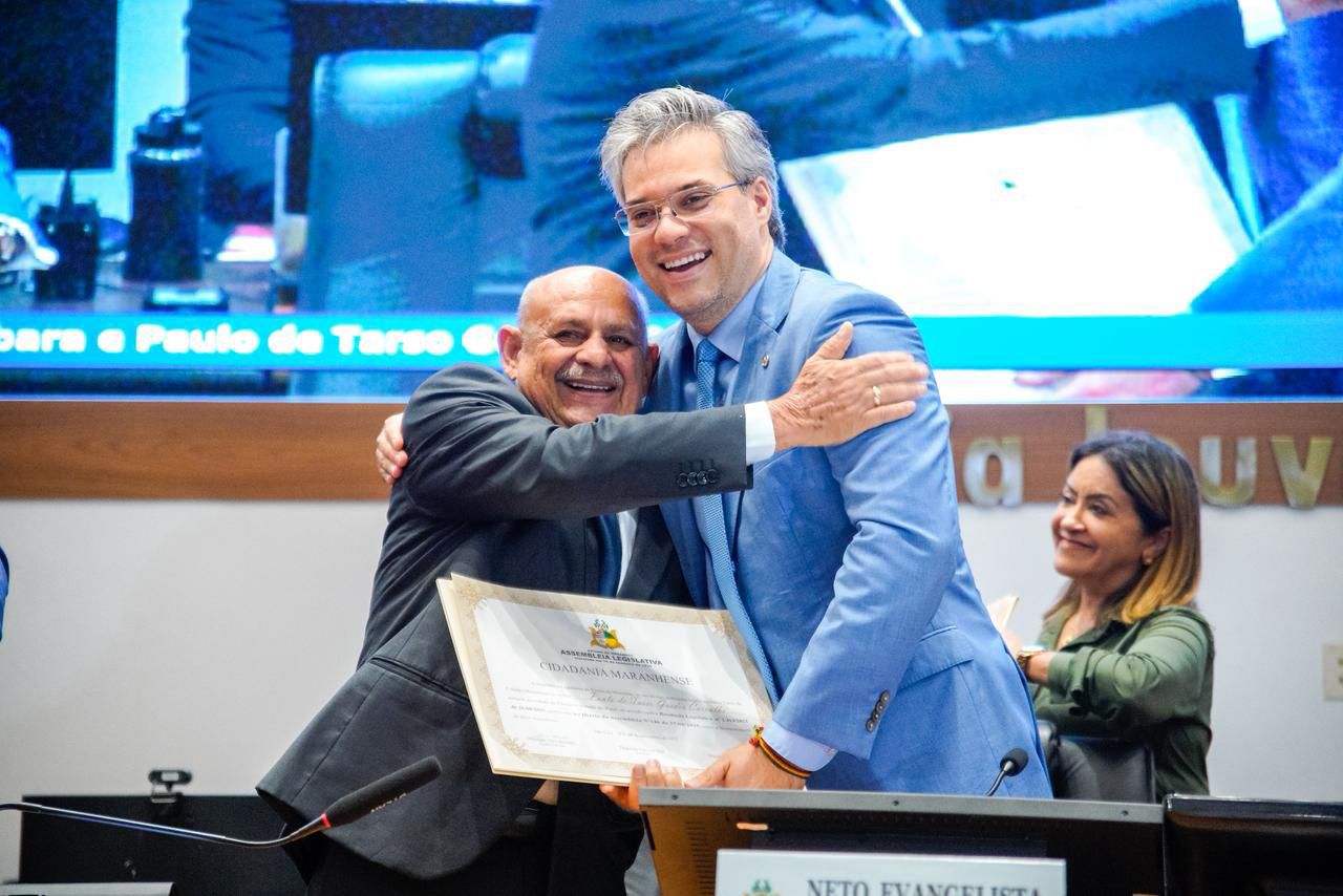 Para o Deputado Estadual Neto Evangelista, a homenagem é um reconhecimento do Poder Legislativo maranhense ao trabalho desenvolvido em favor do crescimento, da modernização e da eficiência conquistada pelo setor no estado e no país. “Me sinto muito honrado de ter sido o autor dos projetos de resolução legislativa que concedeu o Título de Cidadão Maranhense para três ilustres que hoje ajudam o estado do Maranhão. É no cartório que se inicia tudo, é lá que recebemos nossa certidão de nascimento, é lá onde nos casamos, é o cartório que dá o título de propriedade para o cidadão, então temos que dar atenção a esse setor. Com a entrega desse título, estamos valorizando quem se dedica diariamente ao crescimento do nosso estado. Reconhecendo pessoas que prestam serviços de excelência no Maranhão. Então sintam-se agora, verdadeiramente, maranhenses, Paulo de Tarso, Diovani e Devanir”, pontuou Neto Evangelista.