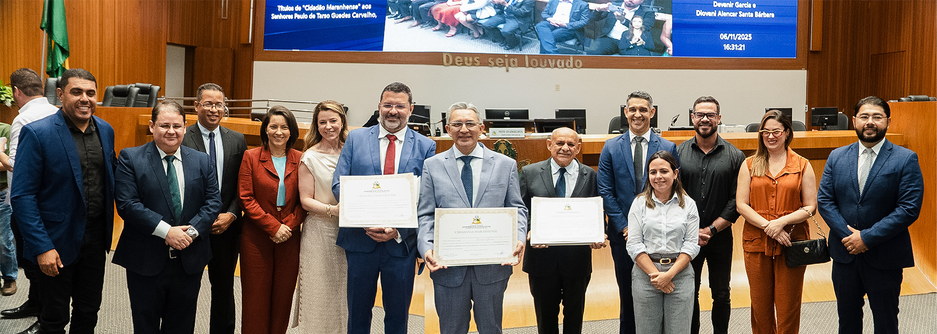 Após a apresentação do vídeo foi o momento de entregar os títulos de Cidadão Maranhense a Paulo de Tarso Guedes Carvalho, Diovani Alencar Santa Bárbara, Devanir Garcia. A solenidade, que foi conduzida pelo Deputado Neto Evangelista, foi motivo de orgulho para toda a classe extrajudicial que se fez presente no Plenário Nagib Haickel, na sede da Assembleia Legislativa do Maranhão.