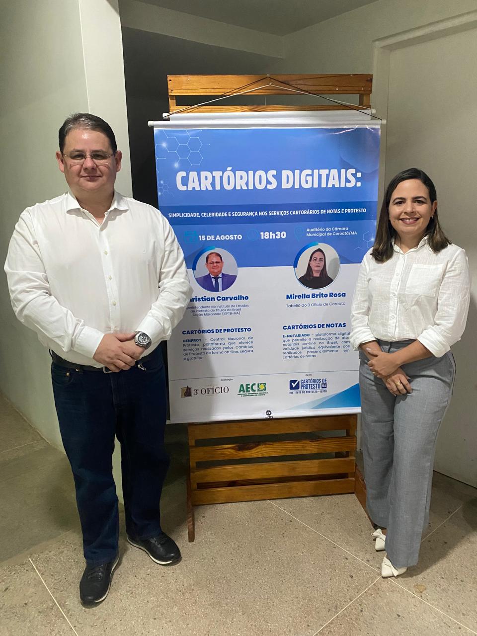 Na última sexta-feira (15), Christian Carvalho, superintendente do Instituto de Estudos de Protesto de Títulos do Brasil – Seção Maranhão (IEPTB-MA), participou do evento “Cartórios Digitais: simplicidade, celeridade e segurança nos serviços cartorários de notas e protesto” que aconteceu no município de Coroatá no Maranhão.