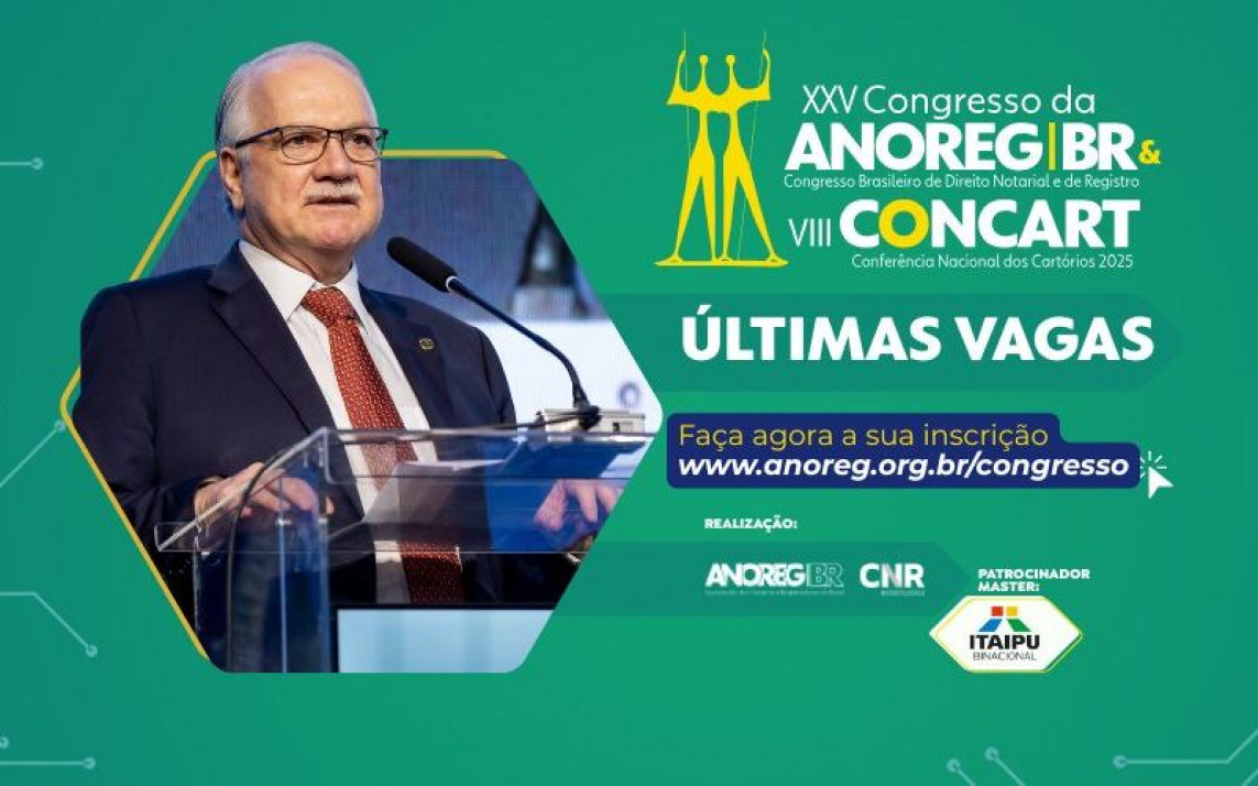 XXV Congresso Brasileiro de Direito Notarial e de Registro (Congresso da ANOREG/BR) e a VIII Conferência Nacional dos Cartórios (CONCART)