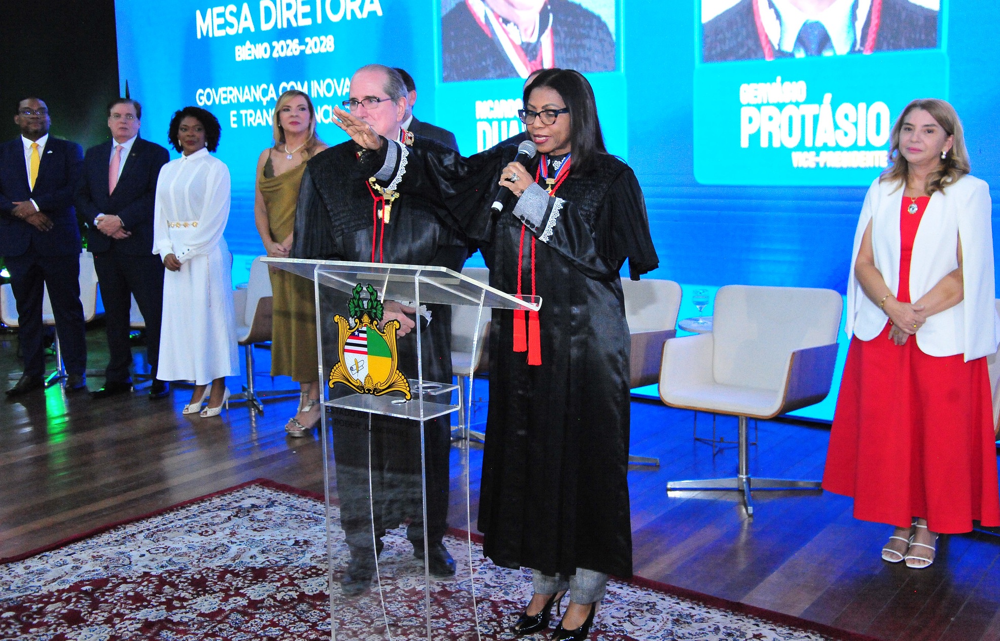 A desembargadora Angela Maria Moraes Salazar assumiu, na última sexta-feira (24/4), a Corregedoria Geral do Foro Extrajudicial (COGEX), em solenidade realizada no Multicenter Sebrae. O evento marcou a posse dos dirigentes da Mesa Diretora do Judiciário maranhense no biênio 2026-2028, que, além da nova corregedora, será composta, respectivamente, pelos desembargadores, Ricardo Duailibe (presidente), Gervásio Protásio dos Santos (vice-presidente); e José Gonçalo (corregedor-geral da Justiça)