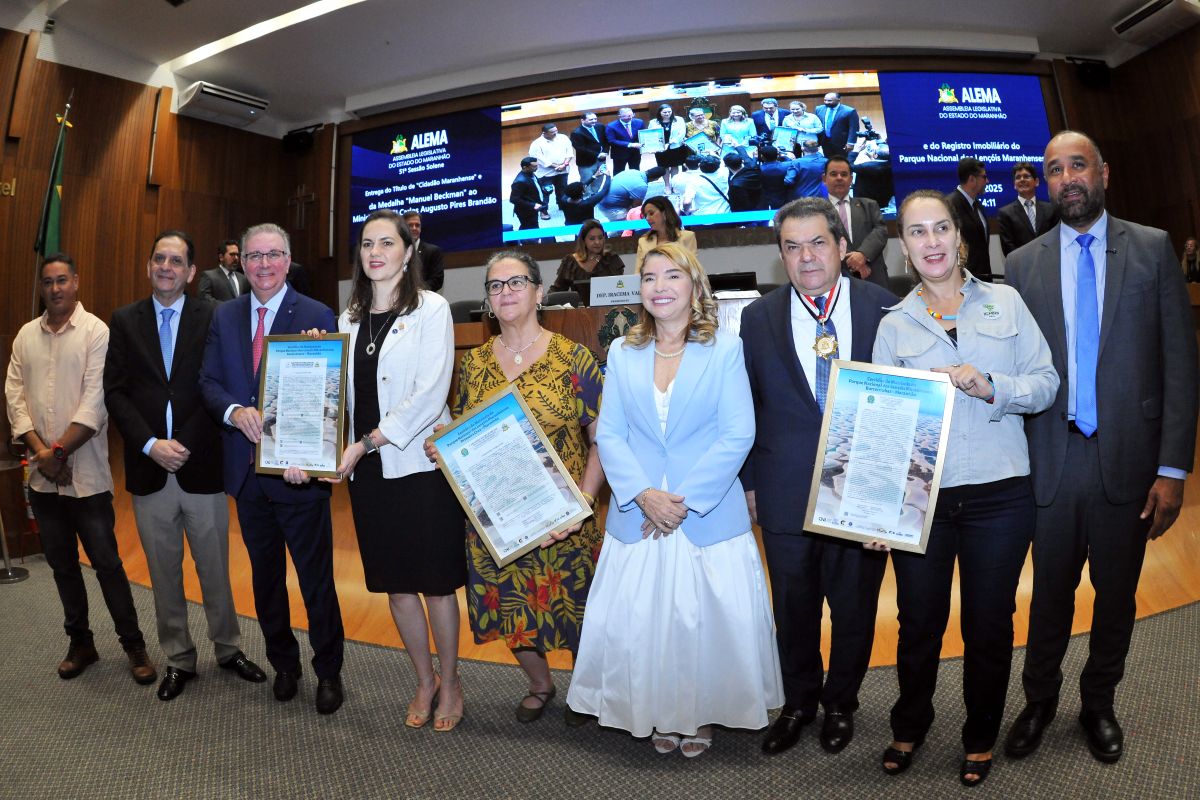 O Tribunal de Justiça do Maranhão e a Assembleia Legislativa do Estado promoveram, nesta sexta-feira (10/10), a entrega do registro imobiliário do Parque Nacional dos Lençóis Maranhenses, em nome da União, em evento conjunto com a concessão do título de Cidadão Maranhense e da Medalha do Mérito Legislativo Manuel Beckman ao ministro Carlos Pires Brandão, do Superior Tribunal de Justiça (STJ), natural de Teresina, no Piauí. A solenidade foi realizada no Plenário do Poder Legislativo estadual.